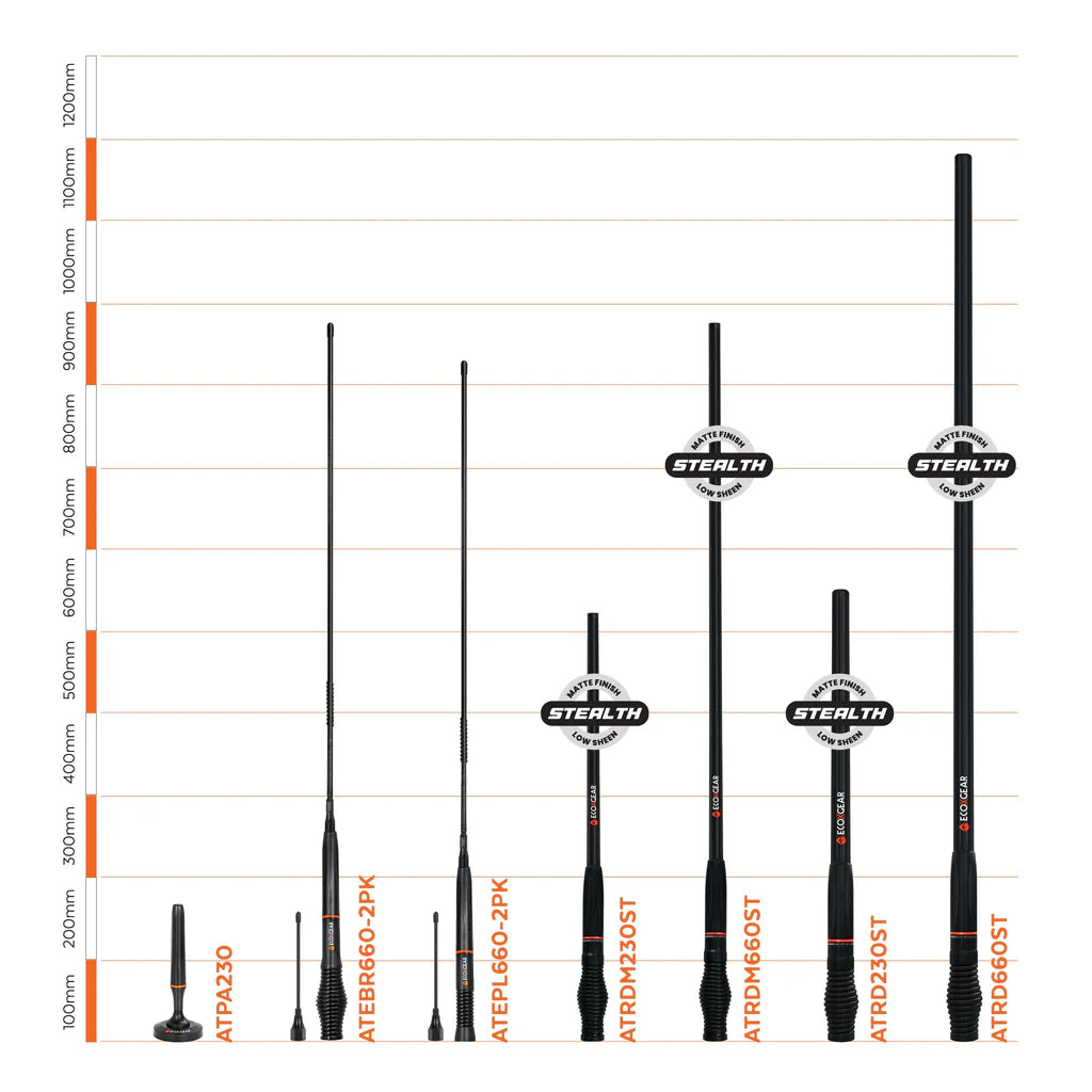 ECOXGEAR ATRD660ST 1180mm Heavy Duty Radome Fibreglass Antenna (6.6dBi Gain) with Stealth Matte Finish.