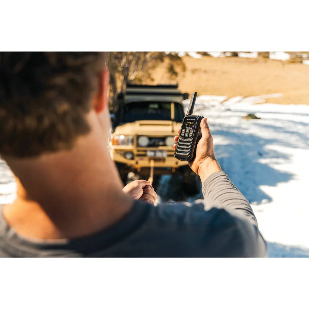 EXG200-2PK (Black Colour). Rugged, IP67 Waterproof & Dustproof design. ECOXGEAR ECOXTALK 2.0W Output Power EXG200 UHF CB Handheld radios are fully waterproof and float when dropped into water. The LED light will be activated automatically for easy retrieval. The Hands-free (VOX) Function keeps you connected without touching the unit. The best match for all your outdoor adventures. Camping, hiking, fishing, biking, kayaking, Paddleboard etc. A built-in LED Torch provides emergency light when needed. Low battery alert reminding you when batteries are low. With a range of up to 13Km, the EXG200 will keep you connected.