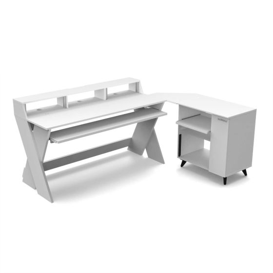 The Glorious Sound Desk Pro is a professional studio workstation, which is suitable for many creative applications and is thoughtfully designed to form the centre of your production process. The studio table offers enough space to set up a laptop/computer, screen, studio monitors, audio interface, 19" rack-mount equipment, MIDI controllers, synths and a master keyboard.