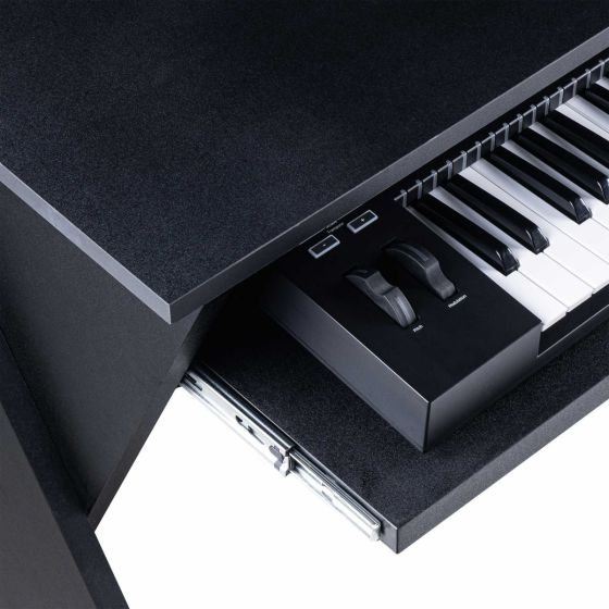 The design of the Sound Desk Pro allows you to produce on 3 levels at the same time. Thanks to the increased width and depth of the working space, there is plenty of room for your equipment. The two 3U rack slots behind it also allow 19'' devices such as compressors, equalizers or effects to be mounted. A further compartment in the centre is suitable for stowing a laptop or audio interface. A pull-out drawer can accommodate keyboards up to 88 keys. It can be mounted onto the Sound Desk Pro in 4 different height positions.