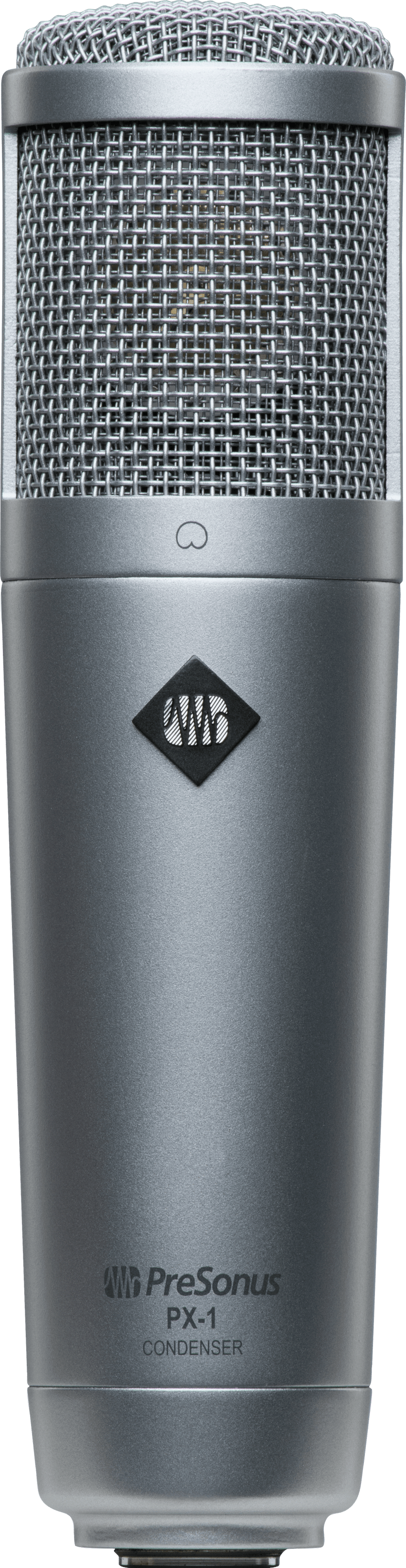 Designed for musicians and performers who demand outstanding audio quality, the PreSonus PX-1 cardioid condenser microphone is an ideal solution for recording vocals, guitar, podcasts, and much more. A true side-address, large-diaphragm condenser microphone, the PX-1 features a 25 mm, gold-sputtered capsule designed to provide exceptional clarity throughout its frequency response range. Rugged construction and top-quality performance specifications make the PX-1 large diaphragm microphone an excellent addition for any home recording or streaming studio.