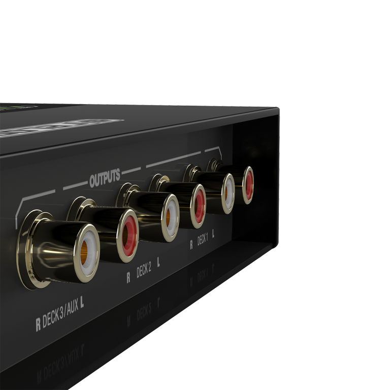 Three stereo inputs provide DJs with maximum flexibility. Turntables, CDJs and similar can be used in any combination. The settings are adjusted using discreet DIP switches, which virtually eliminates any chance of accidental switching in the club. The interface includes three stereo outputs, including an AUX out that can be routed to Serato DJ Pro´s internal sampler. Gold-plated, corrosion-resistant RCA jacks ensure high-quality audio transmission.