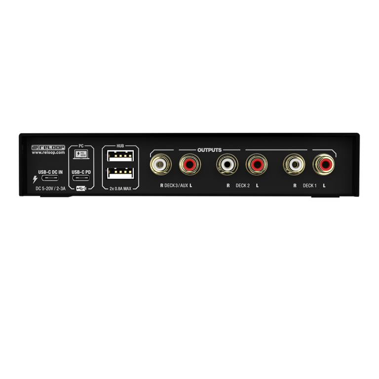 The Reloop Flux is a next-generation USB-C interface for using Serato DJ Pro with turntables, CDJs or other media players. The interface boasts superior audio qualities, a well-designed operating concept and a club-ready design. It can transform any conventional mixer into a professional digital vinyl system.
